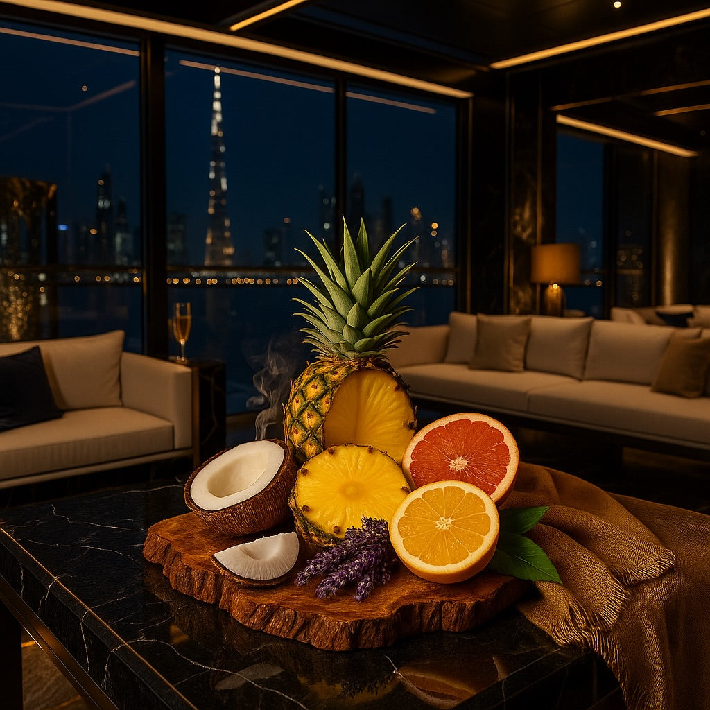 Un cóctel nocturno de piña, cítricos, lavanda y ámbar.